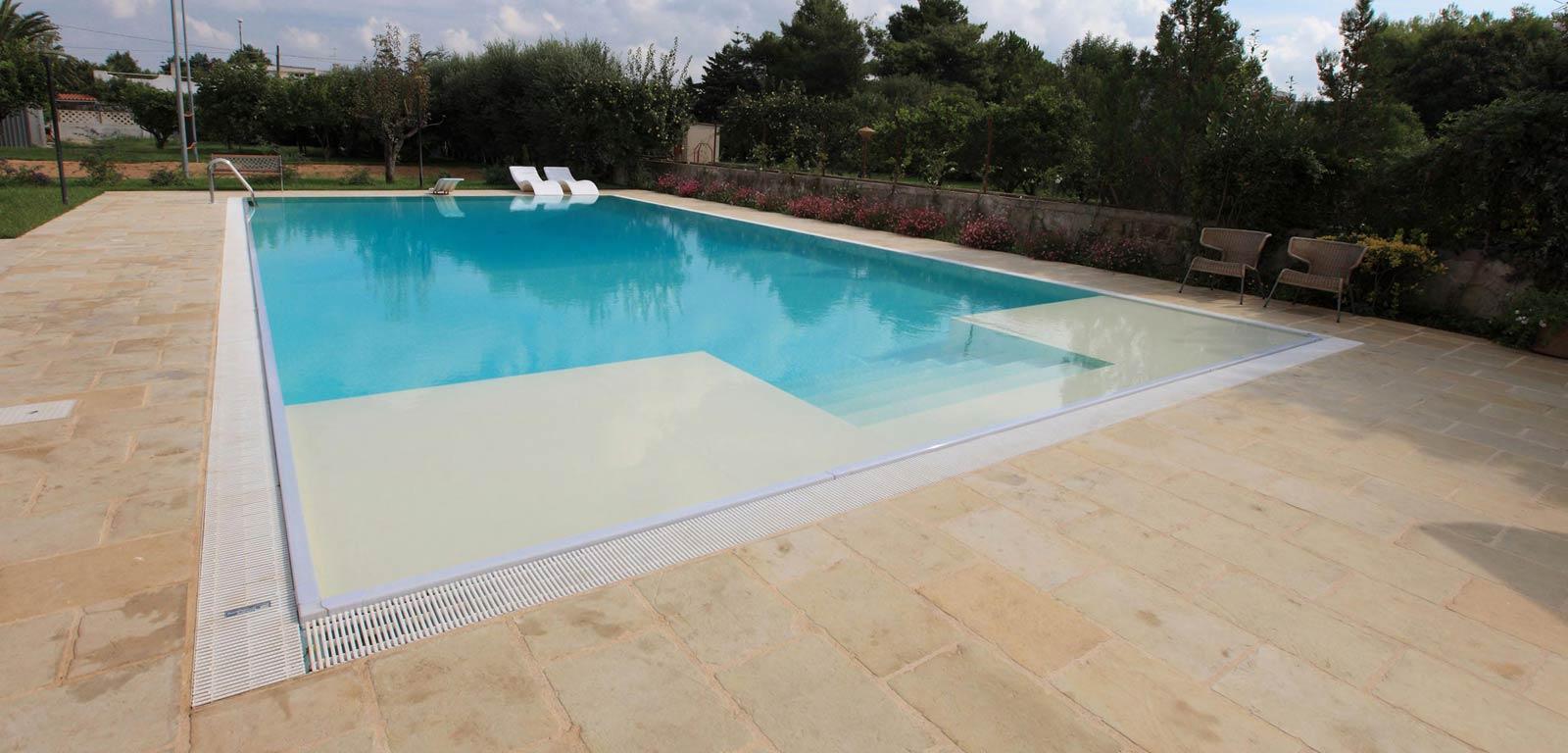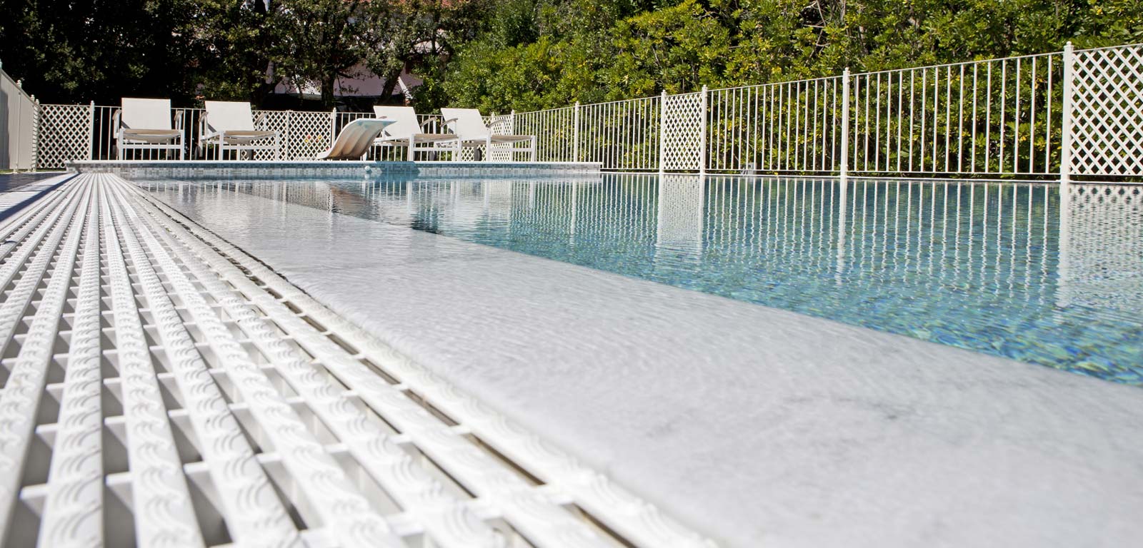 Si tratta di una soluzione tecnologica nuova che permette di rendere ancora più scenografica ed esclusiva la tua piscina. Con questa tipologia di canale a sfioro è possibile applicare finiture d’elevato pregio ed eleganza come ciottoli levigati, griglie in pietra naturale o creare una semplice fessura accostando le piastrelle con la pavimentazione circostante per un risultato estetico di ineguagliabile splendore.